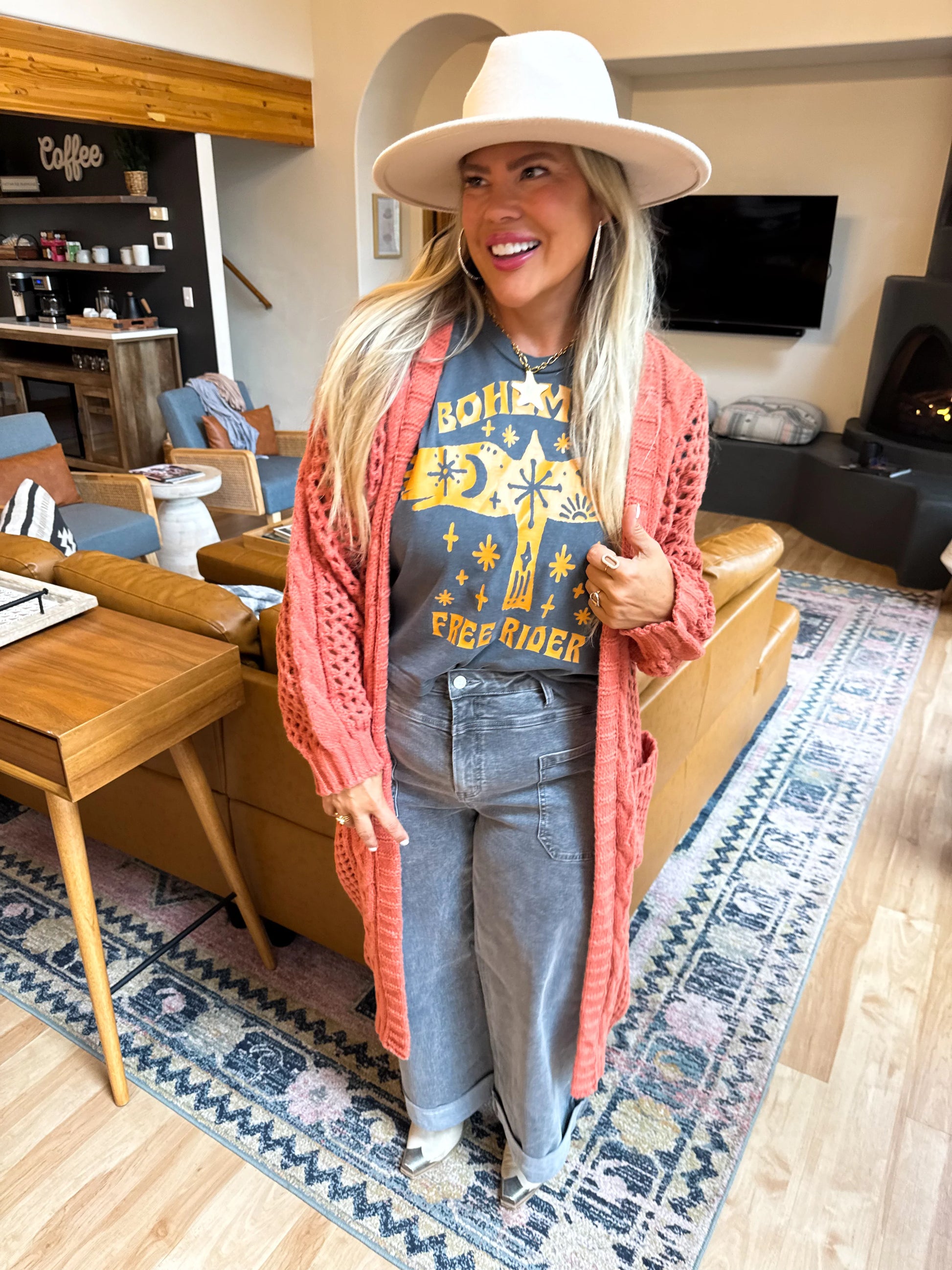 Wow, These cardigans are a total stunner! You will get compliments where-ever you go! This sweater knit fabric cardi features side pockets and is perfectly paired with jeans or shorts and a tank!
